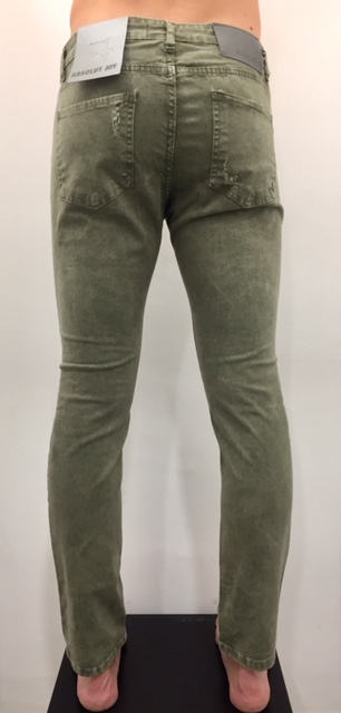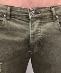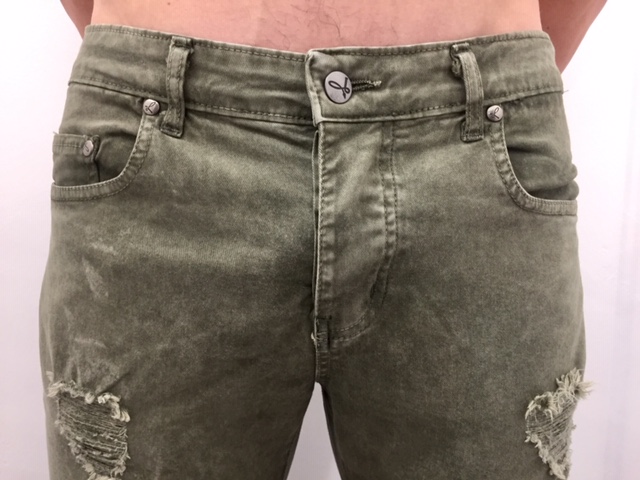 Pantalone slim fit 5 tasche in cotone elasticizzato color con rotture